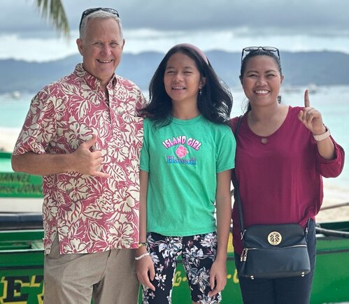 In 2018, former NSCF board member Steve White who was a widower at the time, accepted the call to serve in the ministry long term. In 2019, he married Herlyn, who had been leading the feeding ministry on Boracay for a number of years prior. Today, Steve is the director of ministry for Boracay and Panay under the umbrella of First Love International. He and Herlyn, along with their daughter, lead a ministry that today covers nearly 900 people.